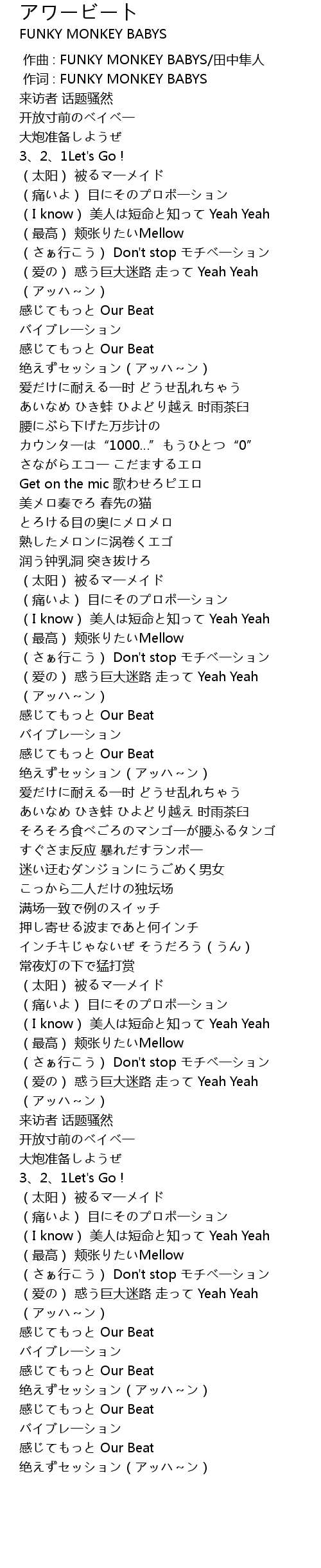 | [00:00.925] | zuo ci : FUNKY MONKEY BABYS |
