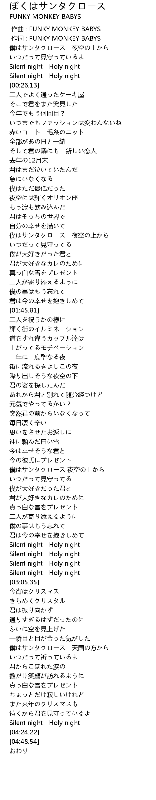 | [01:56.54] | 街に流れるきよしこの夜 |