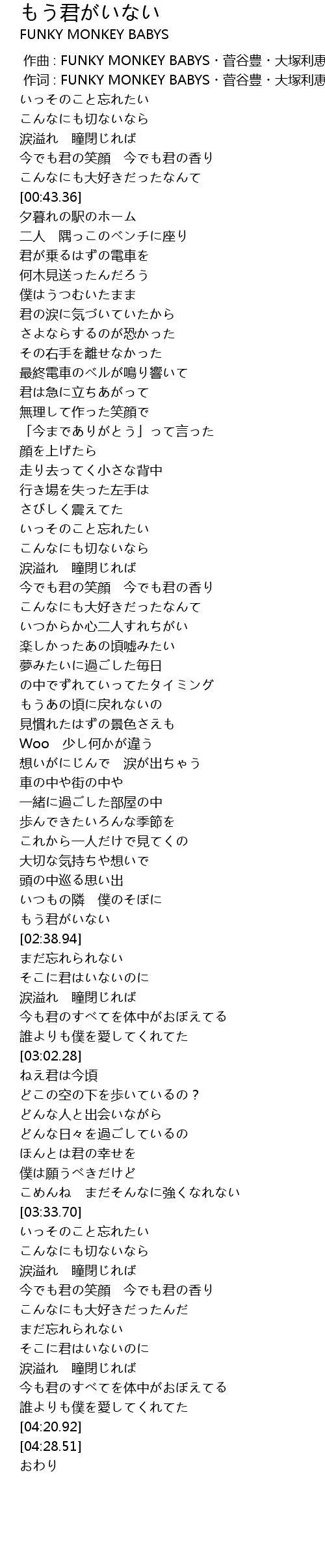 | [00:00.00] | 作曲 : FUNKY MONKEY BABYS・菅谷豊・大塚利恵 |