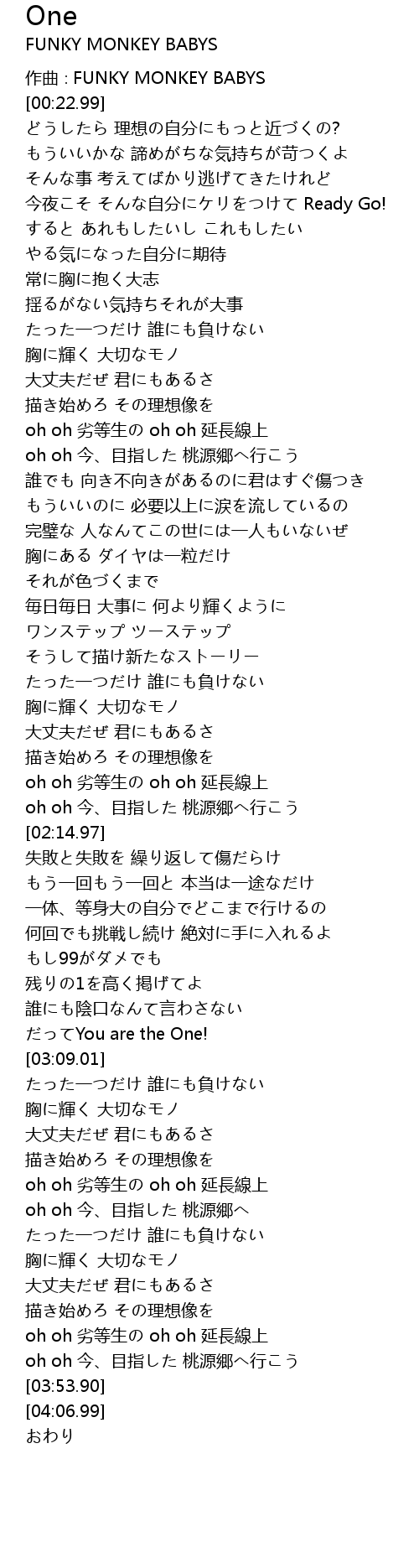 | [00:18.99] | zuo qu FUNKY MONKEY BABYS |