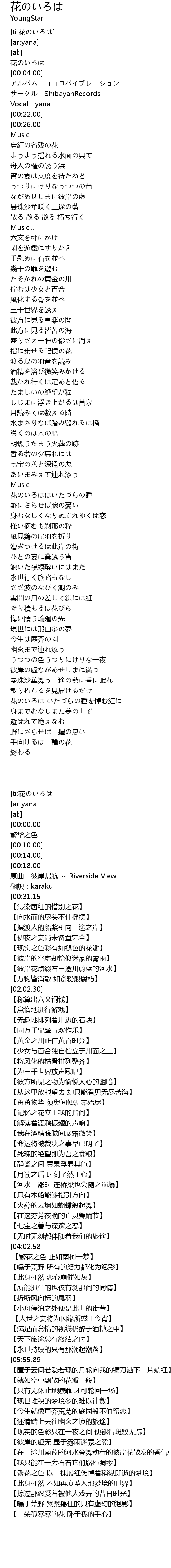 | [00:00.00] | 花のいろは |
