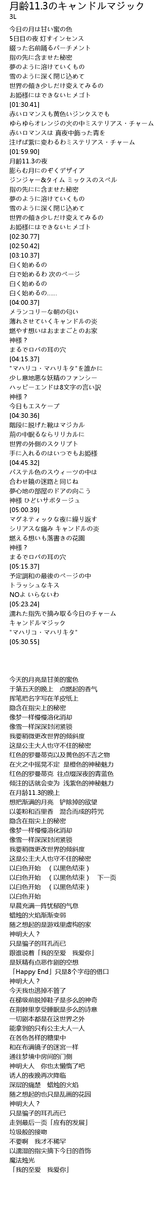 | [01:38.82] | ゆらゆらオレンジの火の中ミステリアス・チャーム |