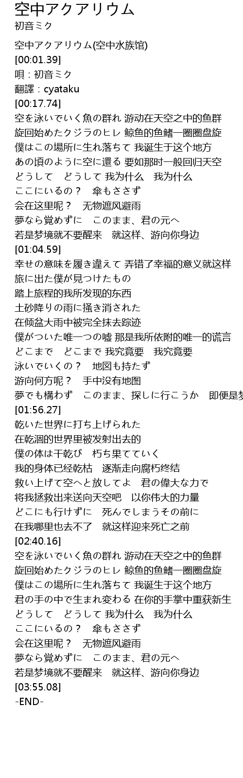 | [00:00.79] | 空中アクアリウム(空中水族馆) |