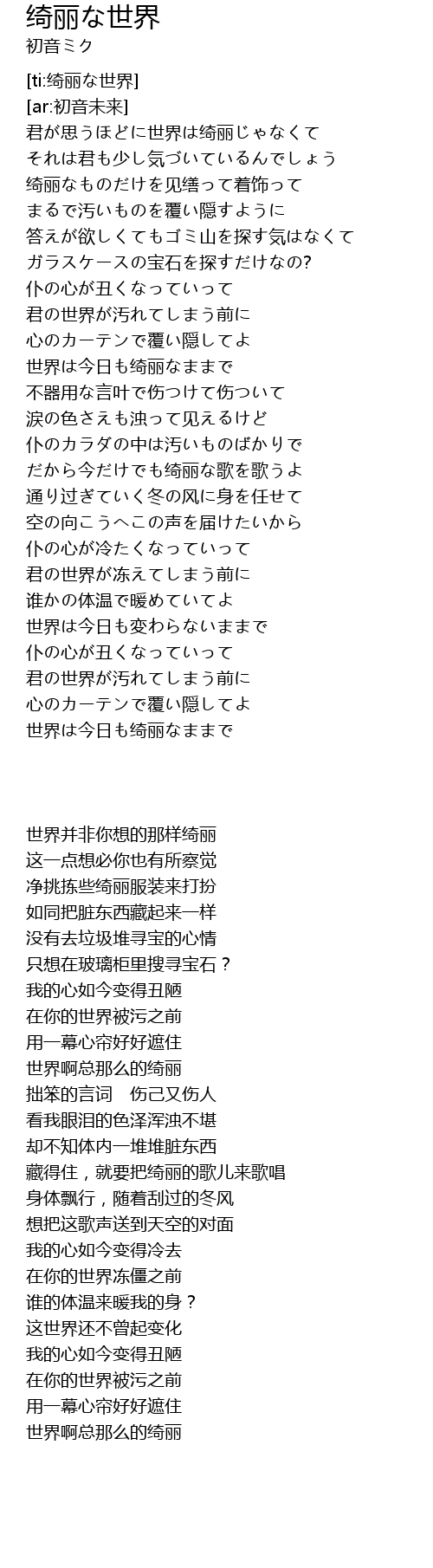 | [01:31.810] | 世界は今日も绮丽なままで |