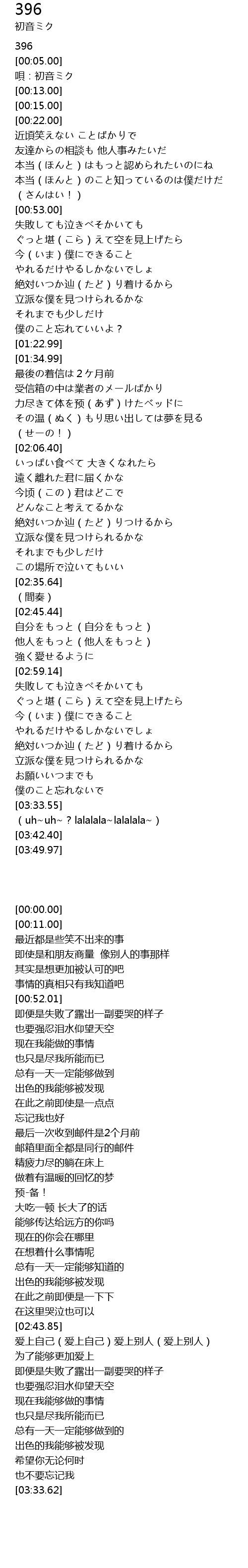 | [02:46.86] | 自分をもっと(自分をもっと) 他人をもっと(他人をもっと) |