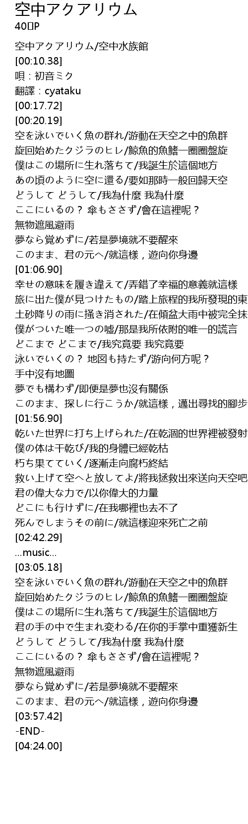 | [00:01.19] | 空中アクアリウム/空中水族館 |