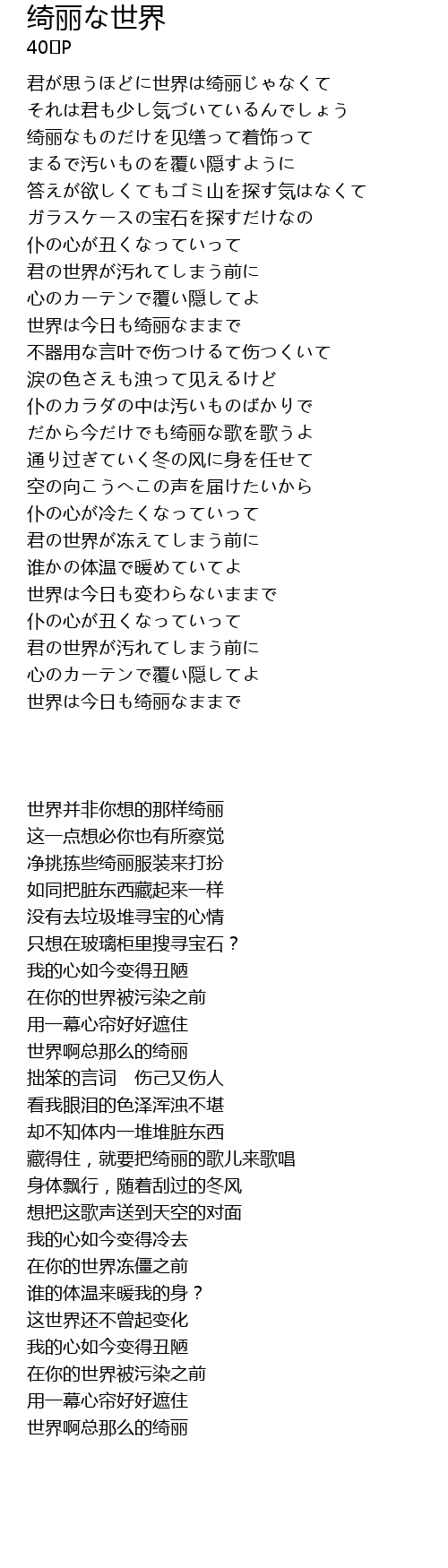 | [04:33.40] | 世界は今日も绮丽なままで |