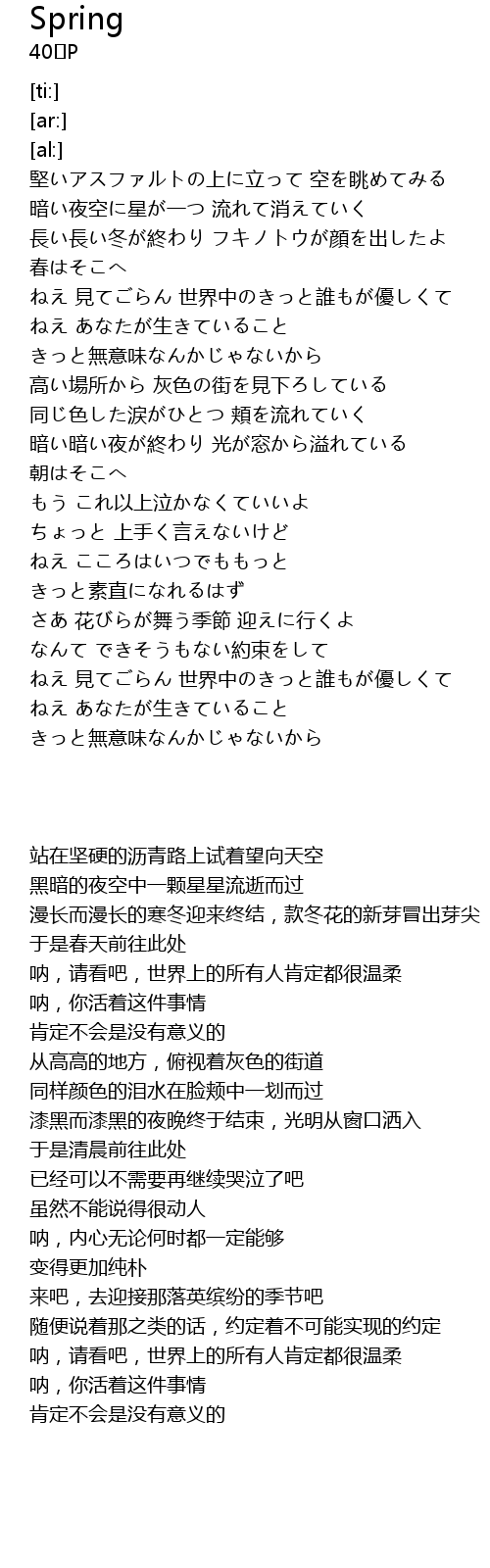 | [00:41.67] | 暗い夜空に星が一つ 流れて消えていく |