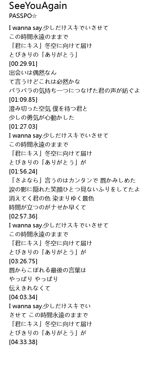 | [02:58.10] | I wanna say.少しだけスキでいさせて この時間永遠のままで |