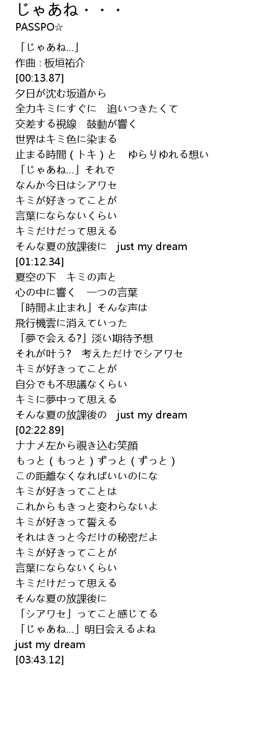 | [02:16.50] | そんな夏の放課後の just my dream |