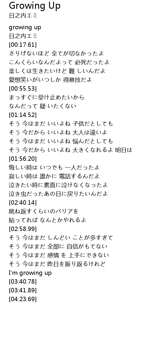 そう 今だから いいよね 大きくなれるよ 明日は |