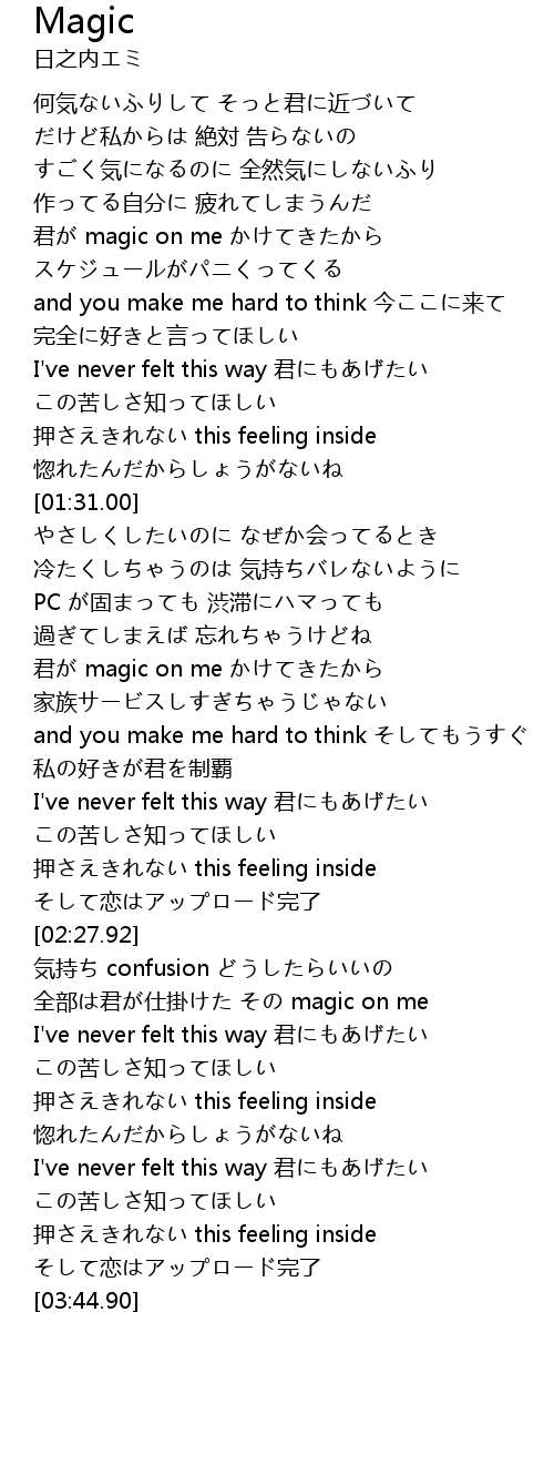| [02:59.20] | 全部は君が仕掛けた その magic on me |