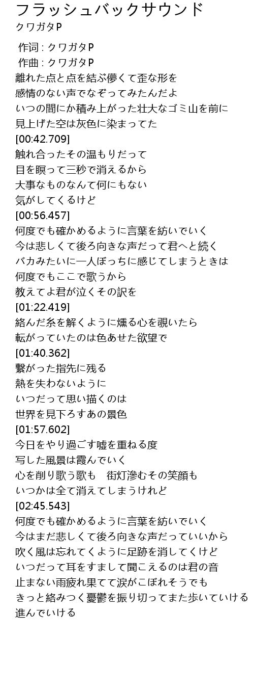 | [02:32.041] | 心を削り歌う歌も 街灯滲むその笑顔も |