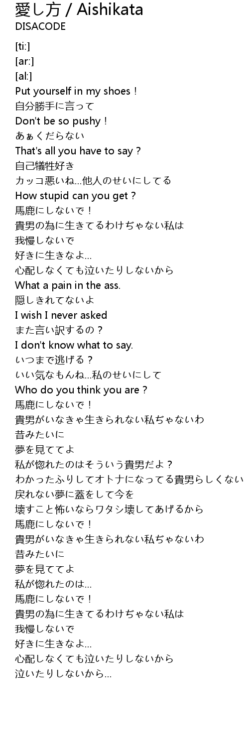 | [02:26.76] | 壊すこと怖いならワタシ壊してあげるから |