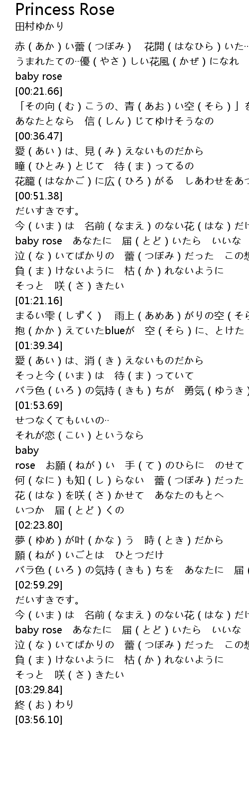 | [03:06.60] | baby rose あなたに 届(とど)いたら いいな |
