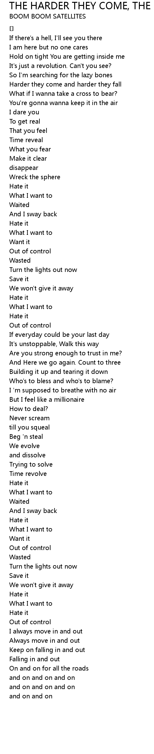 | Song | THE HARDER THEY COME, THE HARDER THEY FALL |