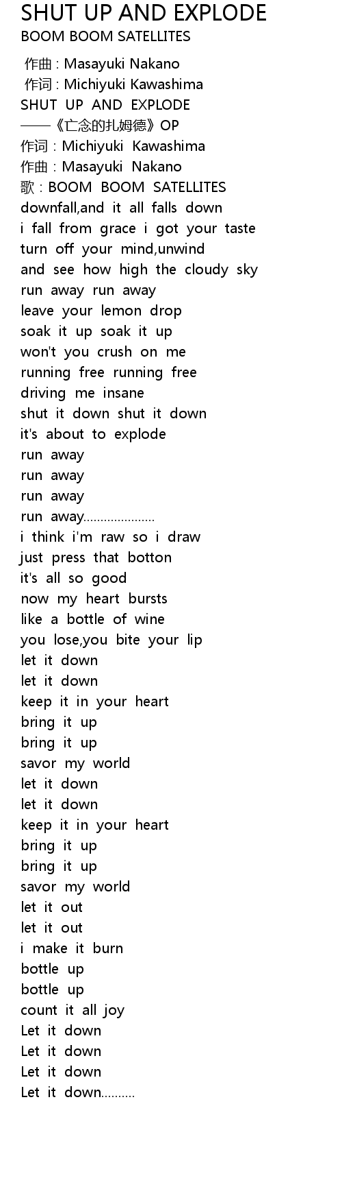 | [00:00.378] | SHUT UP AND EXPLODE |