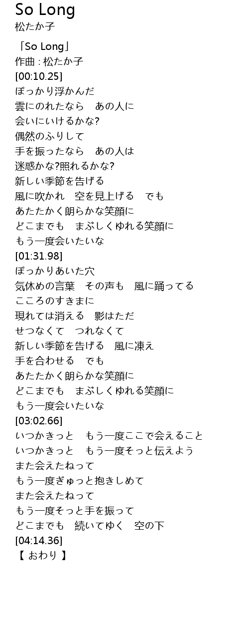 | [00:02.25] | 「So Long」 |