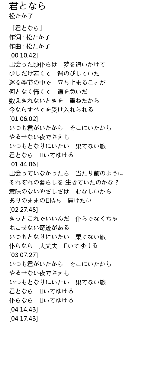 | [03:45.65] | いつもとなりにいたい 果てない旅 |