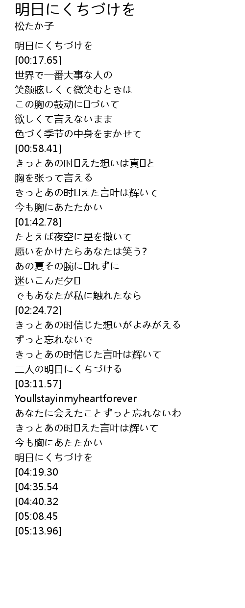 | [00:02.61] | 明日にくちづけを |
