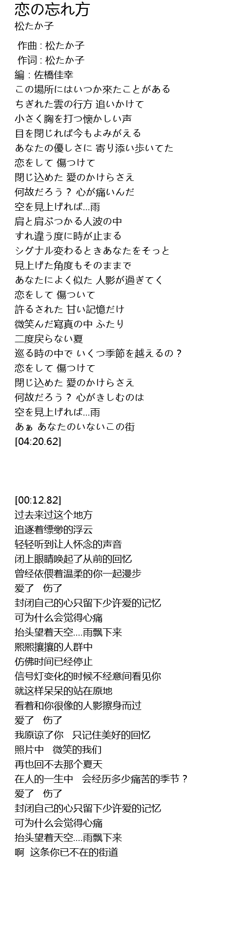 | [04:11.12] | あぁ あなたのいないこの街 |