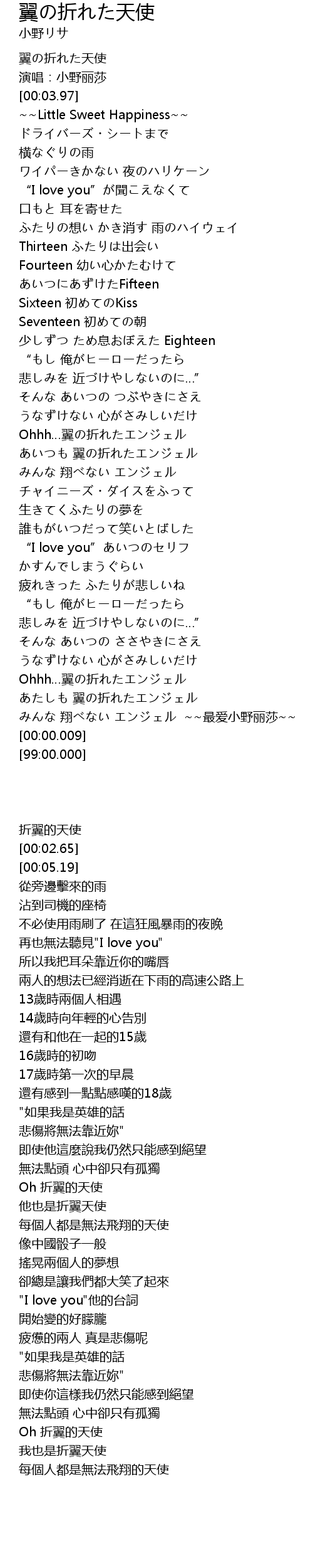 | [00:01.08] | 翼の折れた天使 |
