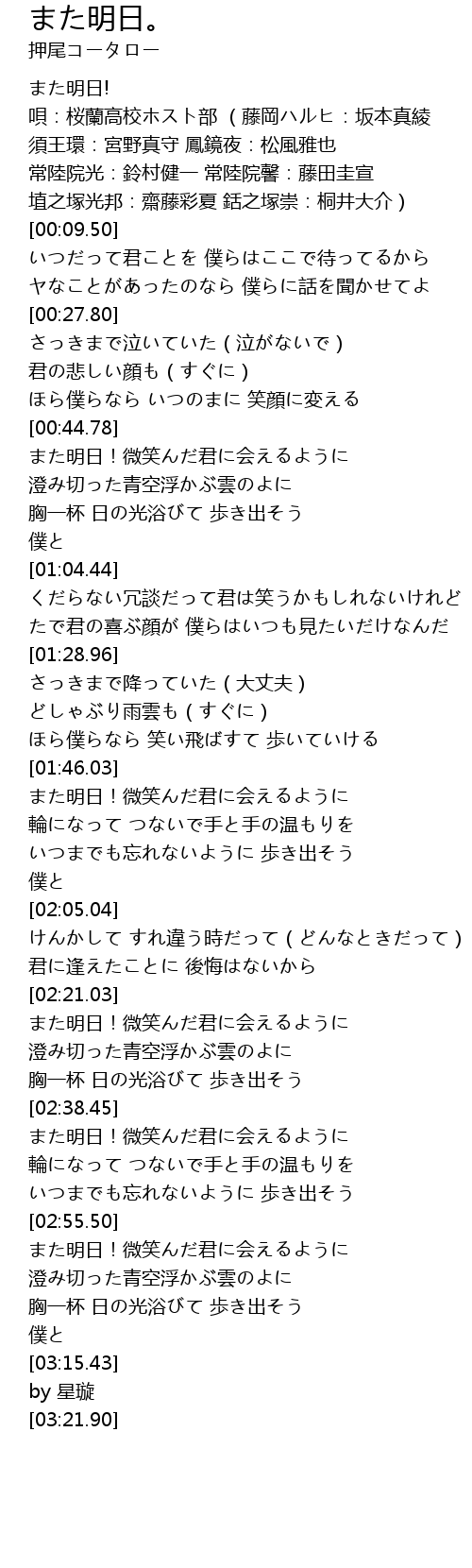 | [00:00.00] | また明日! |