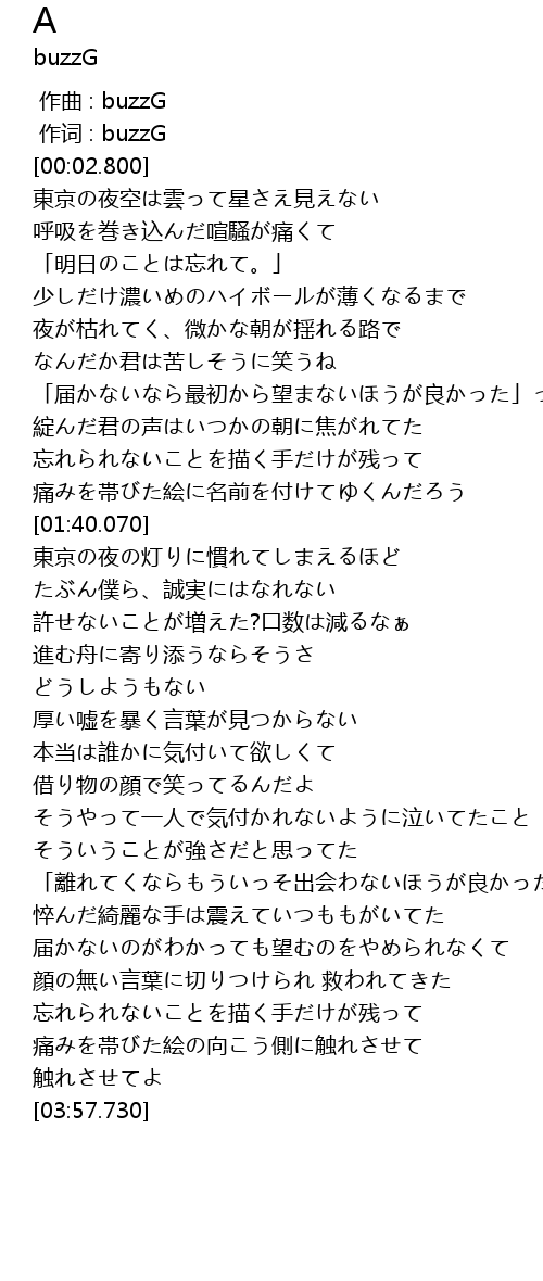 | [00:00.933] | 作词 : buzzG |