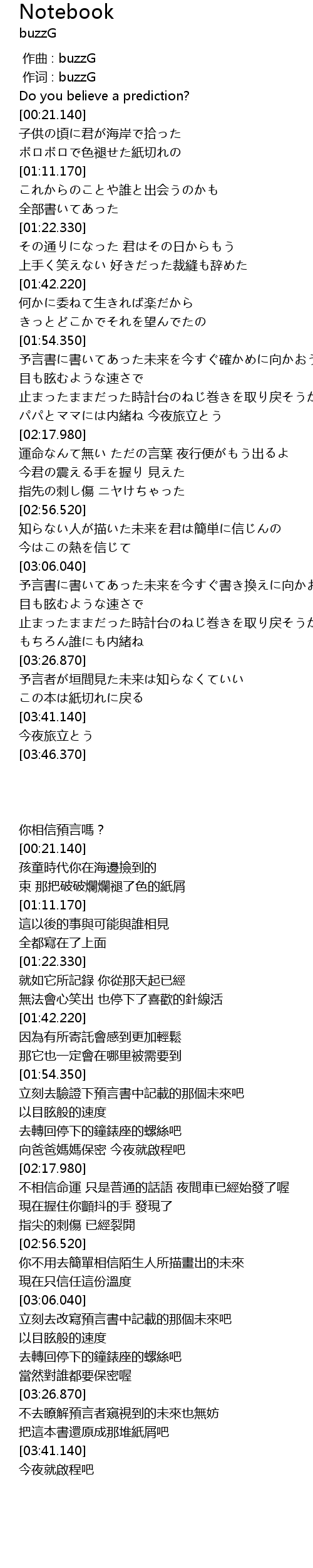 | [02:36.540] | 運命なんて無い ただの言葉 夜行便がもう出るよ |