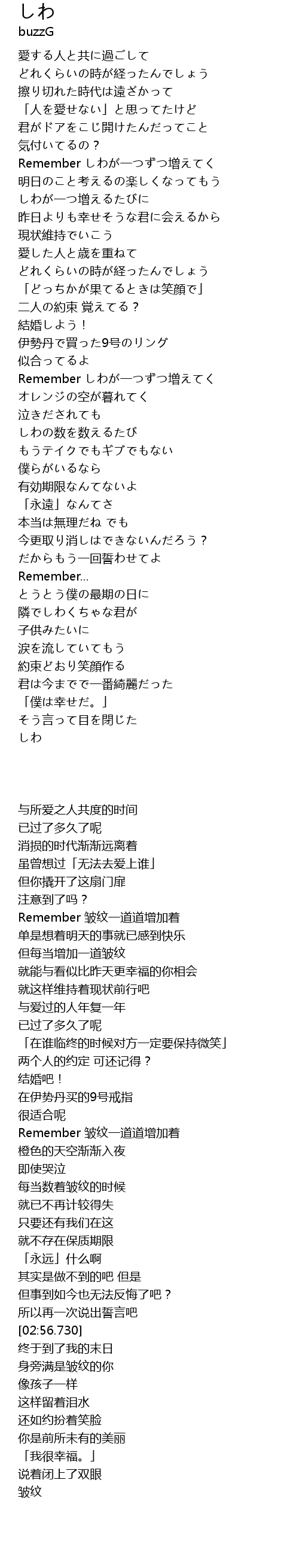 Remember しわが一つずつ増えてく |