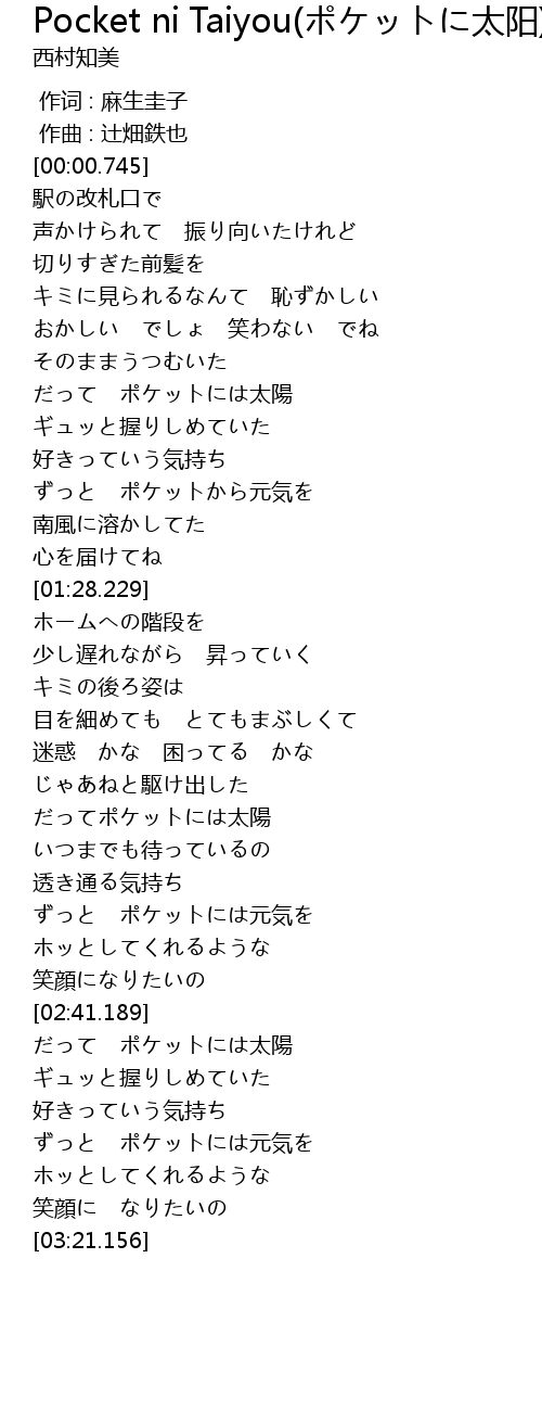 | [01:00.278] | だって ポケットには太陽 |