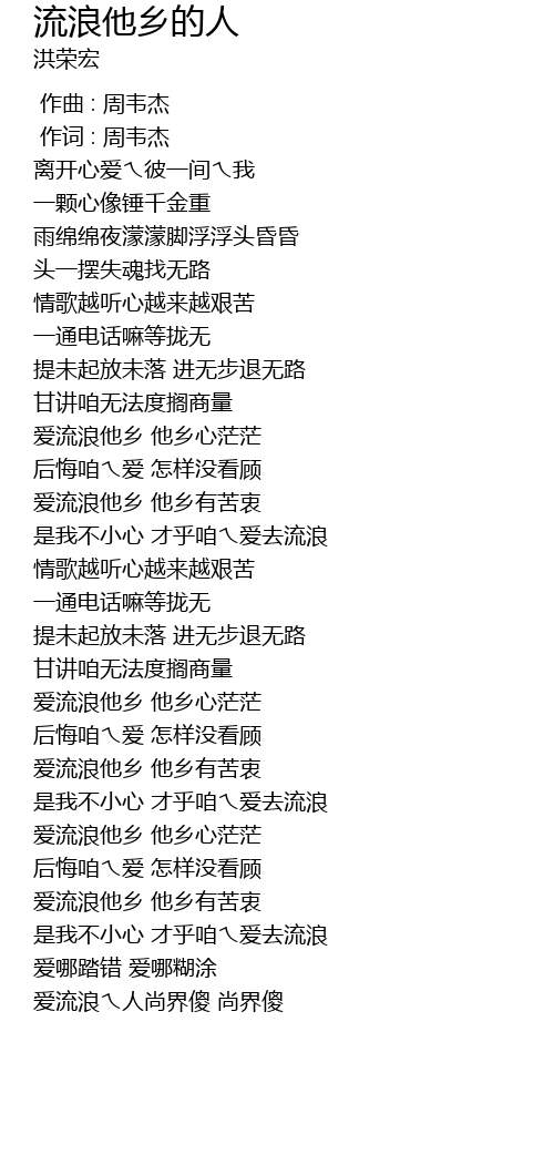 | [02:52.550] | 爱流浪他乡 他乡有苦衷 |