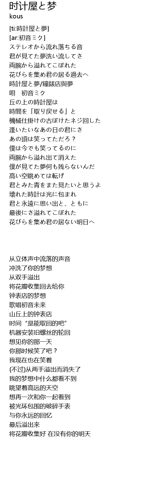 | [00:39.53] | 時計屋と夢/鐘錶店與夢 |