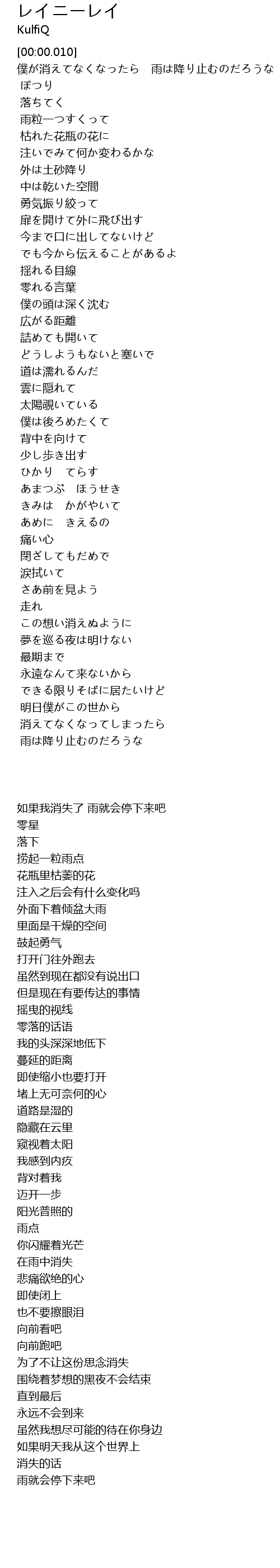 僕が消えてなくなったら 雨は降り止むのだろうな |