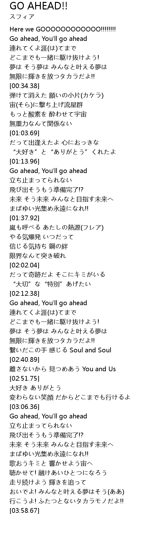| [02:13.30] | Go ahead, You' ll go ahead |
