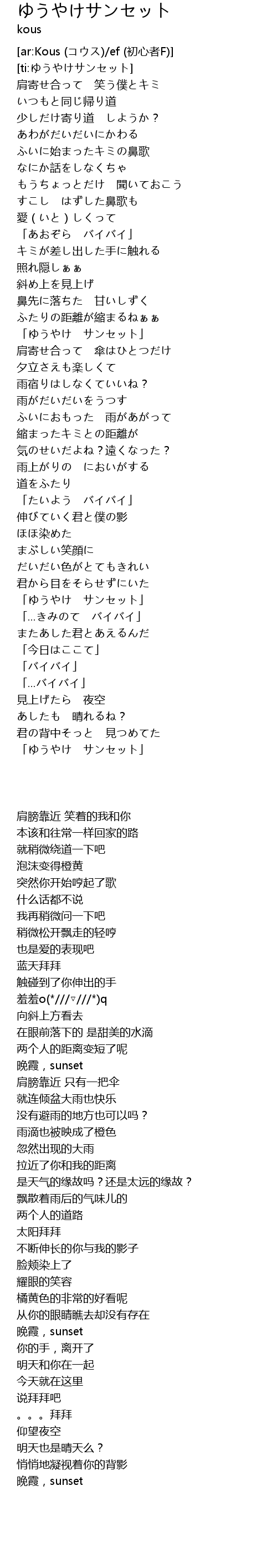 | [01:53.51] | 「ゆうやけ サンセット」 |