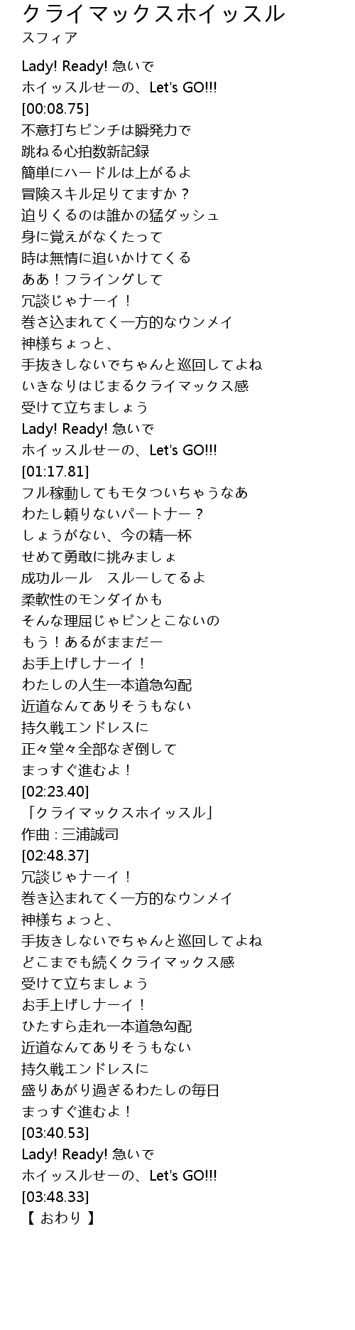 | [03:08.01] | どこまでも続くクライマックス感 |