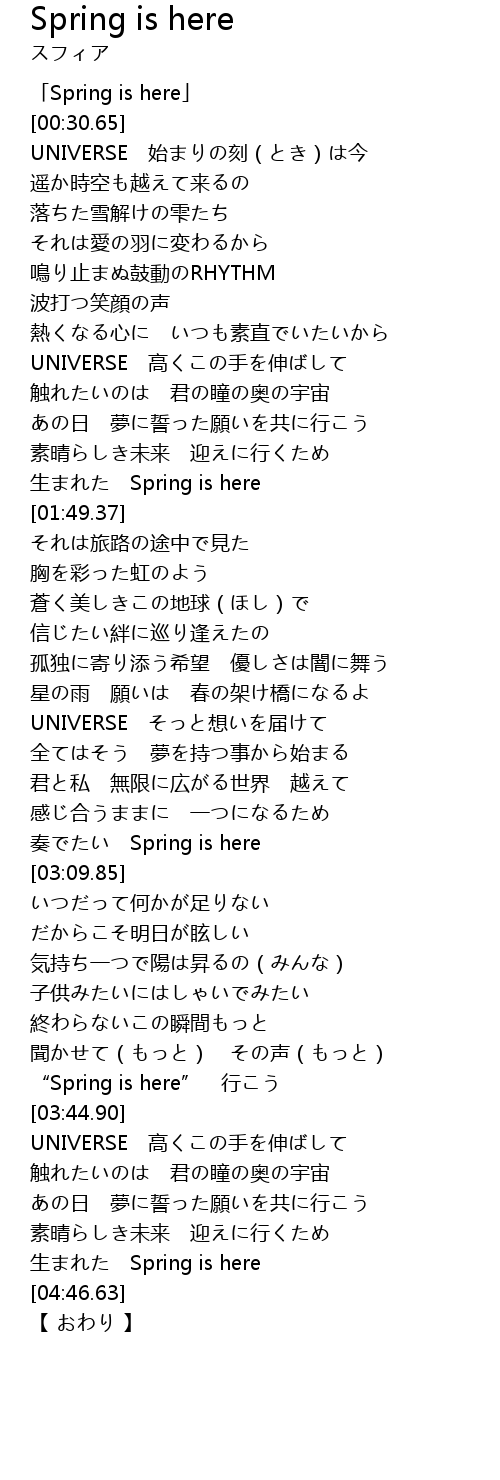| [00:01.65] | 「Spring is here」 |