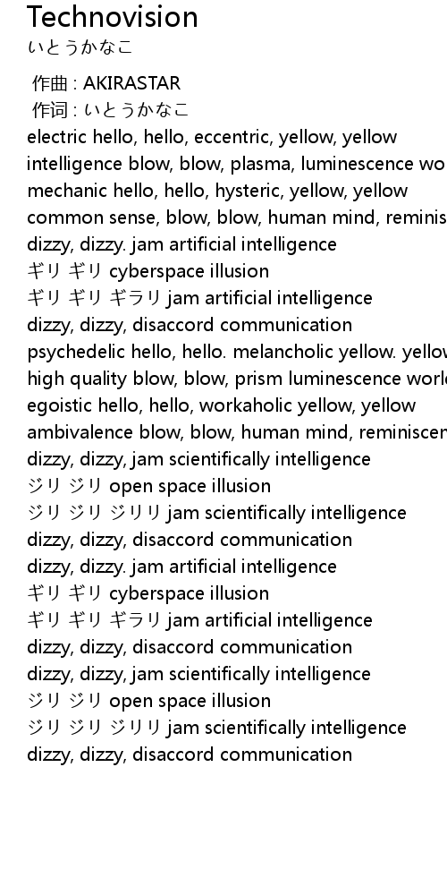 | [03:12.90] | dizzy, dizzy. jam artificial intelligence |