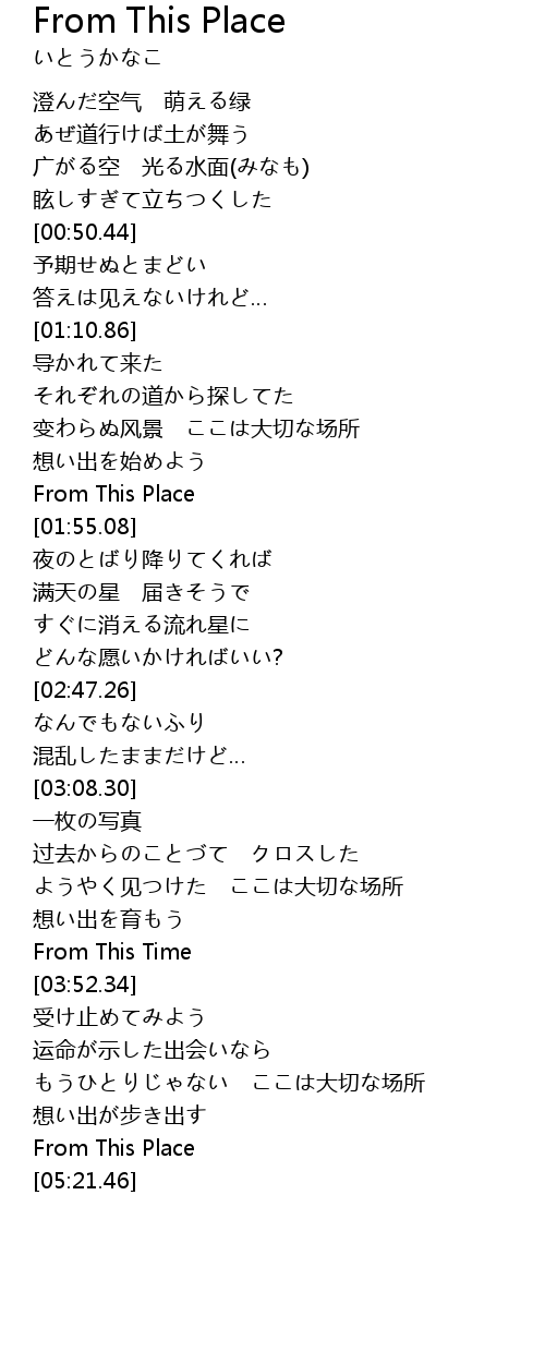 | [01:50.61] | From This Place |