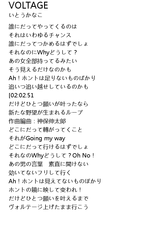 | [02:17.90] | ヴォルテージ上げたまま行こう |