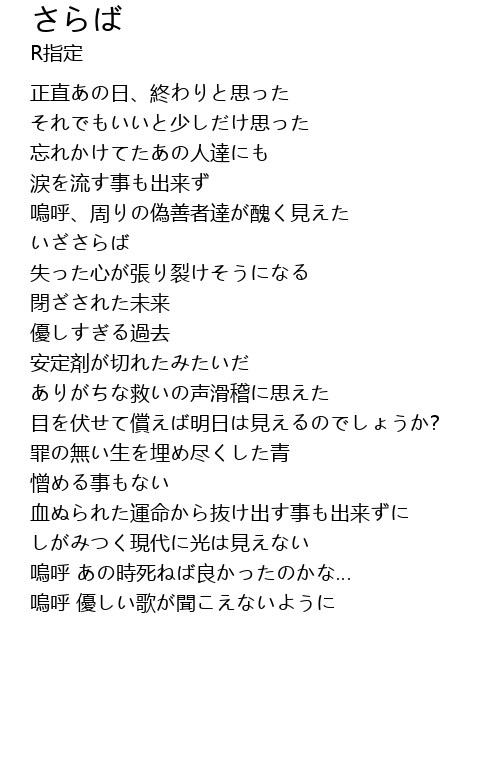 | [02:42.29] | 嗚呼 あの時死ねば良かったのかな… |
