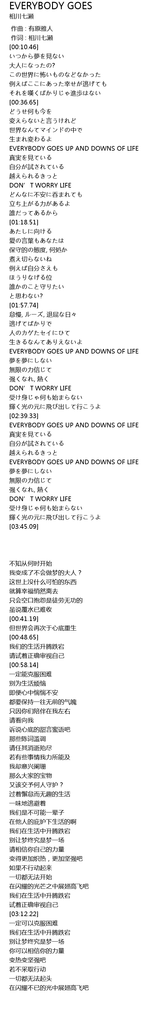 | [03:06.05] | EVERYBODY GOES UP AND DOWNS OF LIFE |