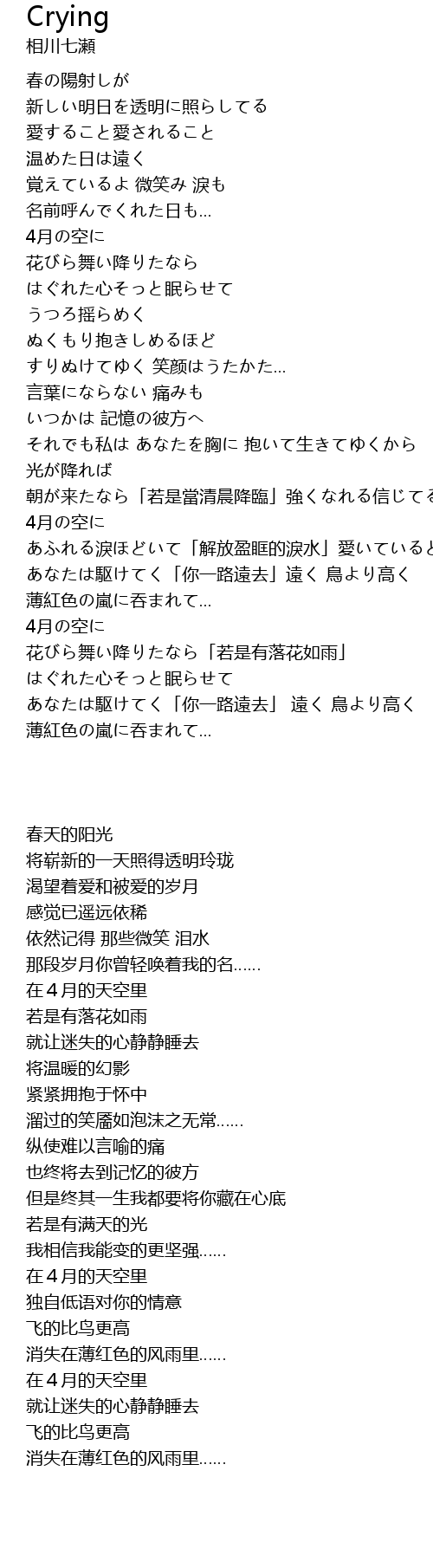 | [03:44.290] | 花びら舞い降りたなら「若是有落花如雨」 はぐれた心そっと眠らせて |