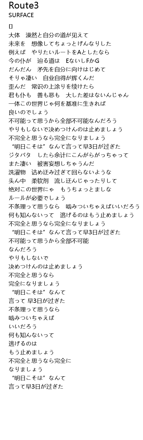 | 何も知んないって 逃げるのはもう止めましょう | |