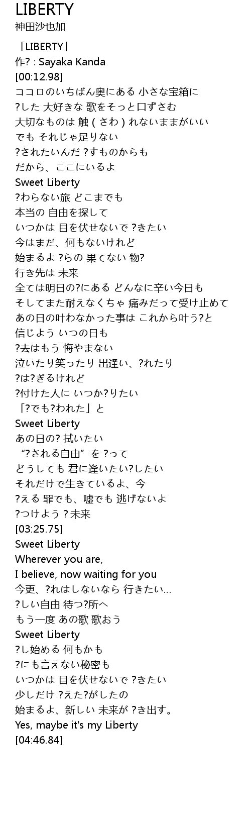 | [00:04.98] | 作?∶Sayaka Kanda |