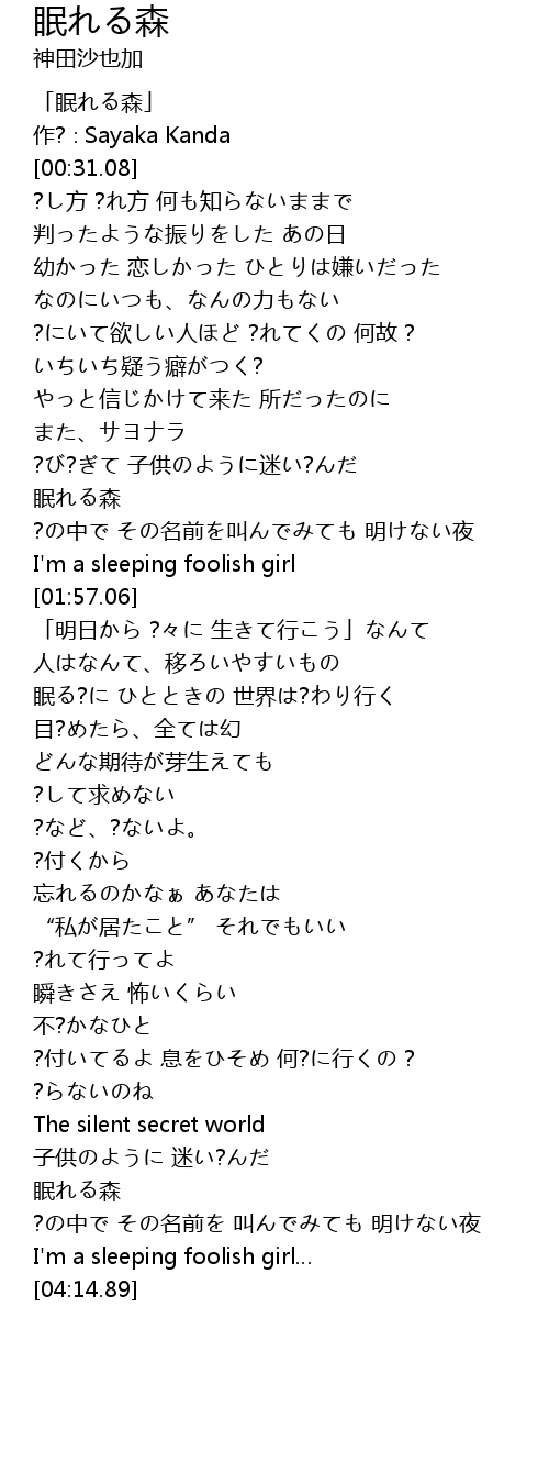 | [00:06.08] | 作?∶Sayaka Kanda |