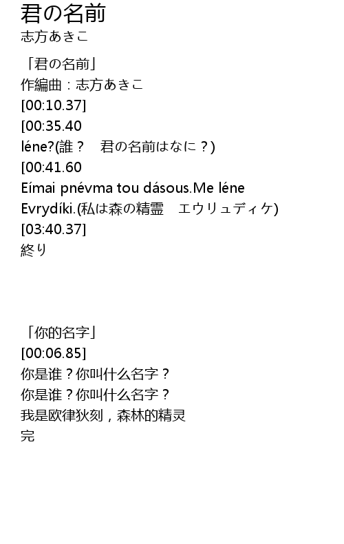 | [03:17.08][00:35.40] | Poia eísai? Pos se léne?(誰? 君の名前はなに?) |