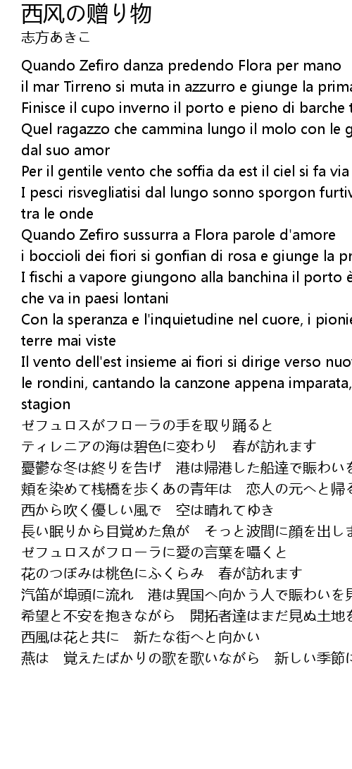 | [02:56.29] | Quando Zefiro sussurra a Flora parole d' amore |