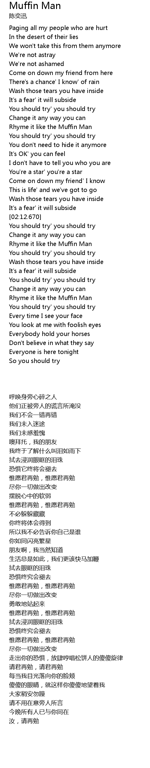 | [02:24.100] | Rhyme it like the Muffin Man |